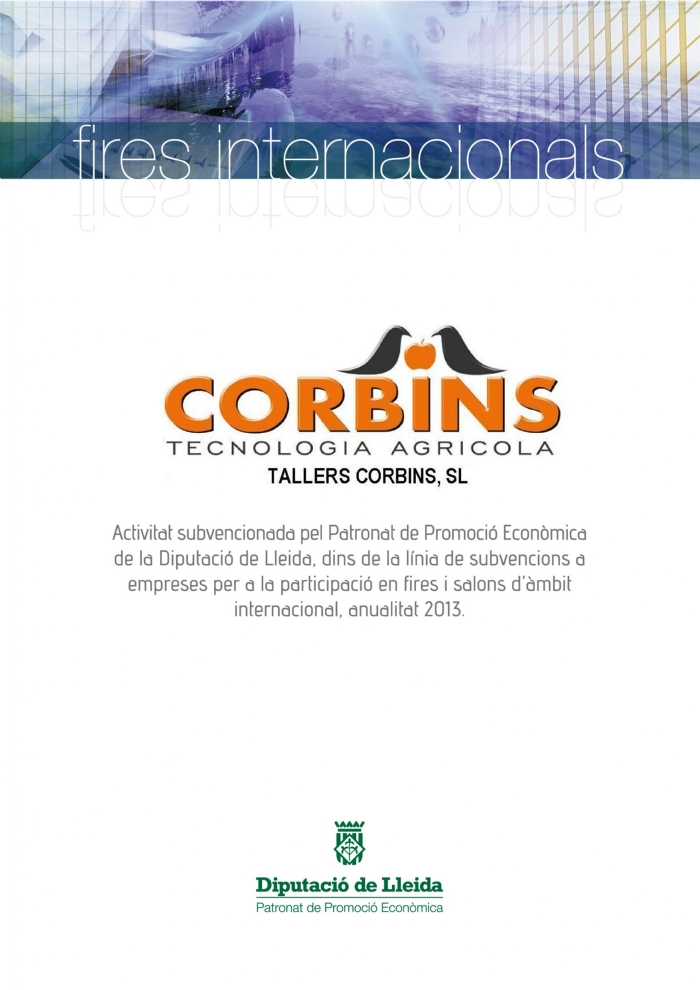 Talleres Corbins participó durante el año 2013 en lasferias internacionales SIMA en París y SITEVI en Montpellier, esta actividad fue subvencionada por el Patronato de...