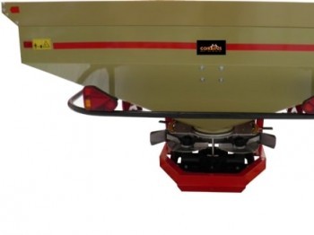 Tolvas de poliéster de gran resistencia. Chasis pintado al horno con pintura al polvo (epoxi). Esparcido perfecto hasta una anchura de 14 m. Sistema de agitación. Grupo esparcidor de gran durabilidad. Transmisión con protección.