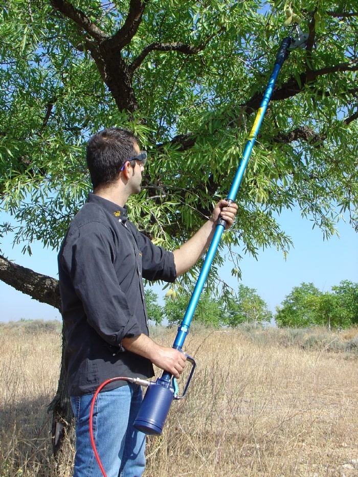 Son tijeras de podar neumáticas gigantes que funcionan con aire comprimido y que son el accesorio ideal para realizar grandes cortes en ramas de hasta 50 mm de diámetro con el menor esfuerzo.