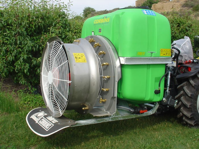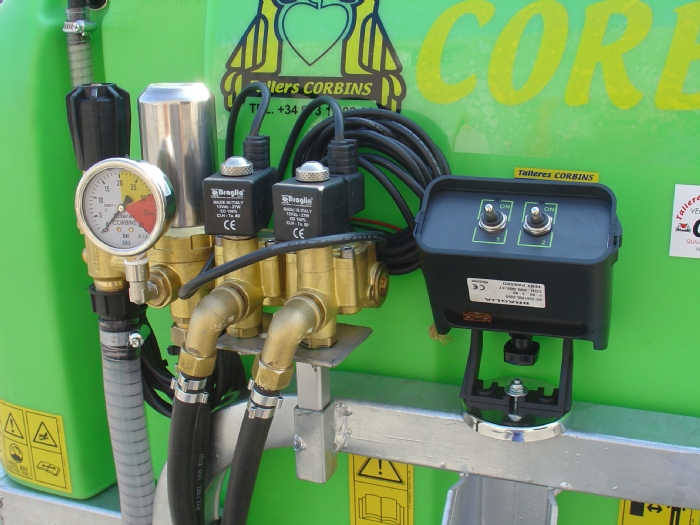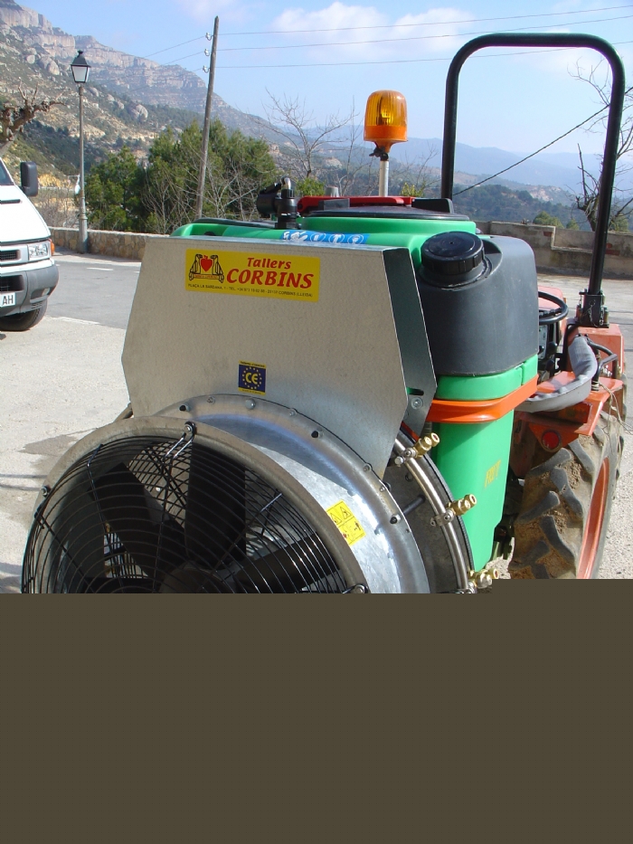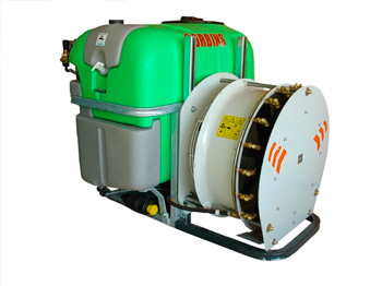 Chasís en tubo de acero cuadrado, pleado en frío y electro-soldado. Pintura en polvo. Depósito en polietileno de alta densidad. Depósito limpia circuito integrado. Depósito lava manos. Nivel exerior translucido. Mezclador hidráulico. Filtro de llenado de depósito. Filtro aspiración bomba con válvula automática antipolución. Bomba de pistón membrana de serie, opcional bomba de pistón cerámico. Mando manual con una válvula reguladora de presión manual y válvula por secciones. Grupo multiplicador por piñones en baño de aceite de una velocidad más punto muerto. Ventilador en polietileno y contra ventilador en la aspiración para los modelos de 750 in 820 mm. Los ventiladores de 820 mm. están fabricados con una caja súper reforzada de 2 velocidades más punto muerto. Boquillas dobles antigota latón de alta calidad con plaquitas cerámicas. Transmisión con protección según normativa incluida.