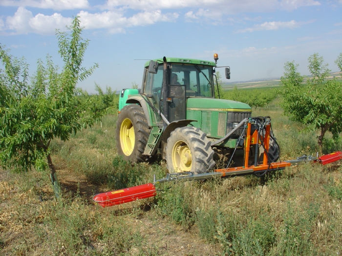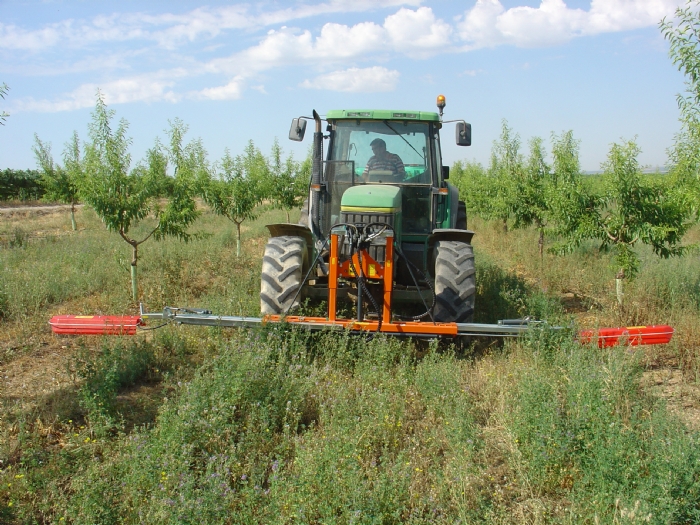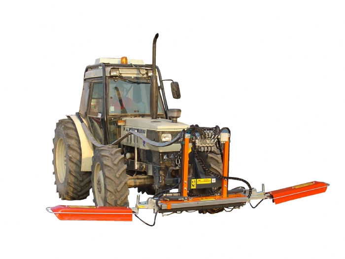 Tratamiento 2 lados. Extensión, recogida, regulación altura en inclinación de las pantallas hidráulicas, muelles de seguridad, pantallas de 0'60 m., jets antigota, distribuidor manual incluido. Se precisa: 1 doble efecto hidráulico.