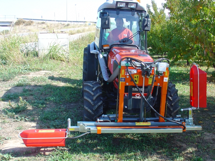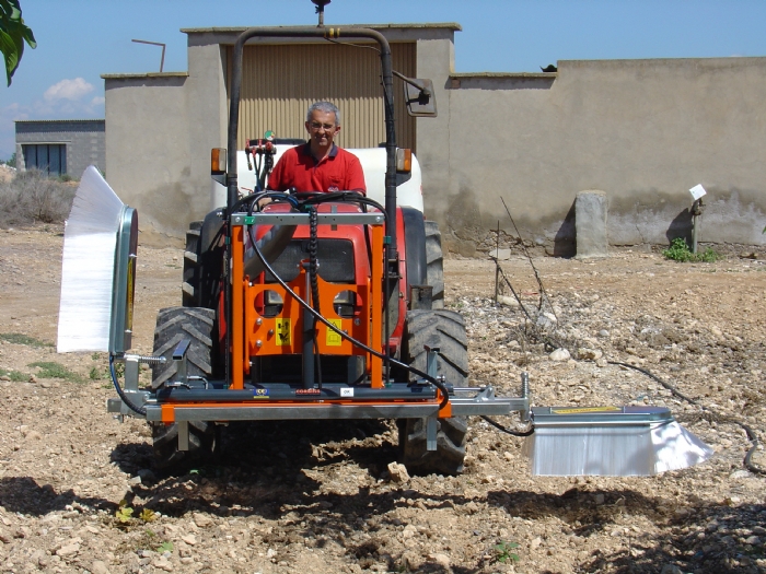 Tratamiento 2 lados. Extensión, recogida y regulación altura hidràulica, muelles de seguridad, pantallas de 0'60 m., jets antigota, distribuidor hidráulico manual incluido. Se precisa: 1 doble efecto hidráulico.