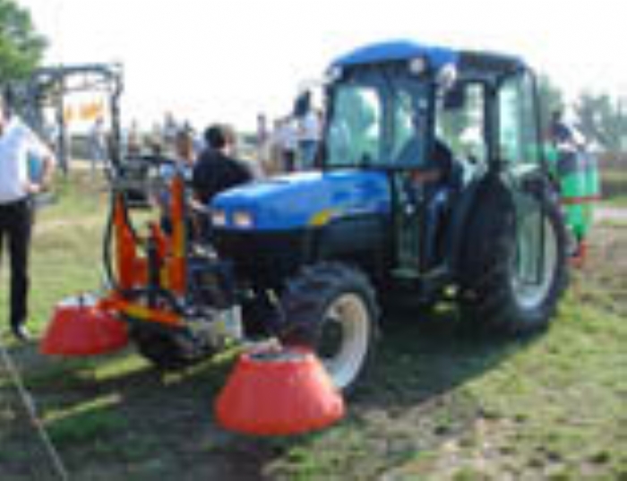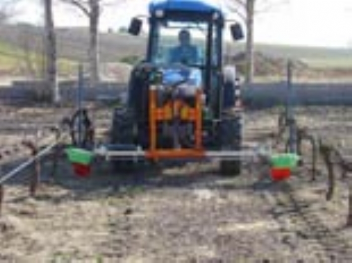 Tratamiento 2 lados especial para viñedos. Modelo 3P-2L extensión, recogida y regulación altura hidráulica. Modelo 5P-2L extensión, recogida, regulación altura y regulación de la inclinación de las pantallas hidráulicas, muelles de seguridad, pantallas de 0'35 m., jets antigota, distribuidor hidráulico manual incluido. Se precisa:1 doble efecto hidráulico.