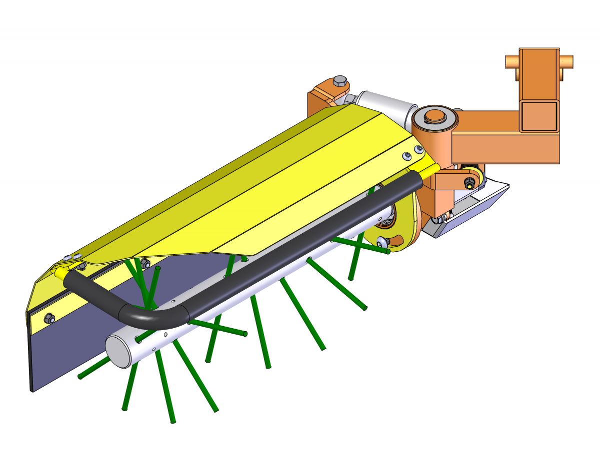 Porta útiles con enganche a los 3 puntos categoría I/II. Chasis modulable y reversible. Incluye mangueras con enchufes rápidos y regulador de caudal para la regulación de la velocidad de giro del accesorio que se desee adaptar. Sistema de enganche rápido para los cabezales intercambiables.