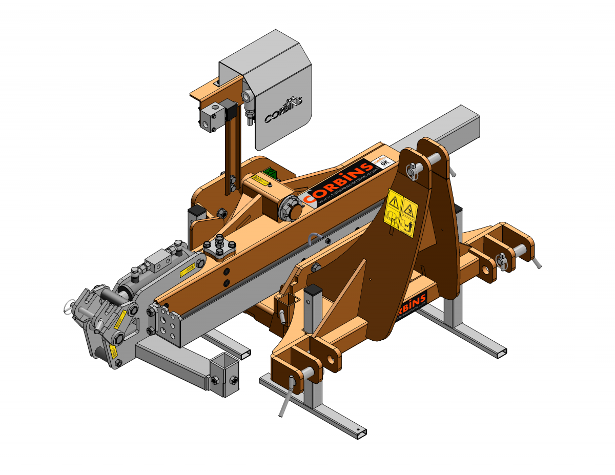 Porta útiles reforzado con enganche a los 3 puntos categoría I/II, chasis modulable y reversible, extensión e inclinación hidráulica, mando eléctrico ERGO, 2 funciones + arranque/paro motor. Sistema enganche rápido para los cabezales intercambiables. Brazo lateral pivotante para pendiente o caballones.