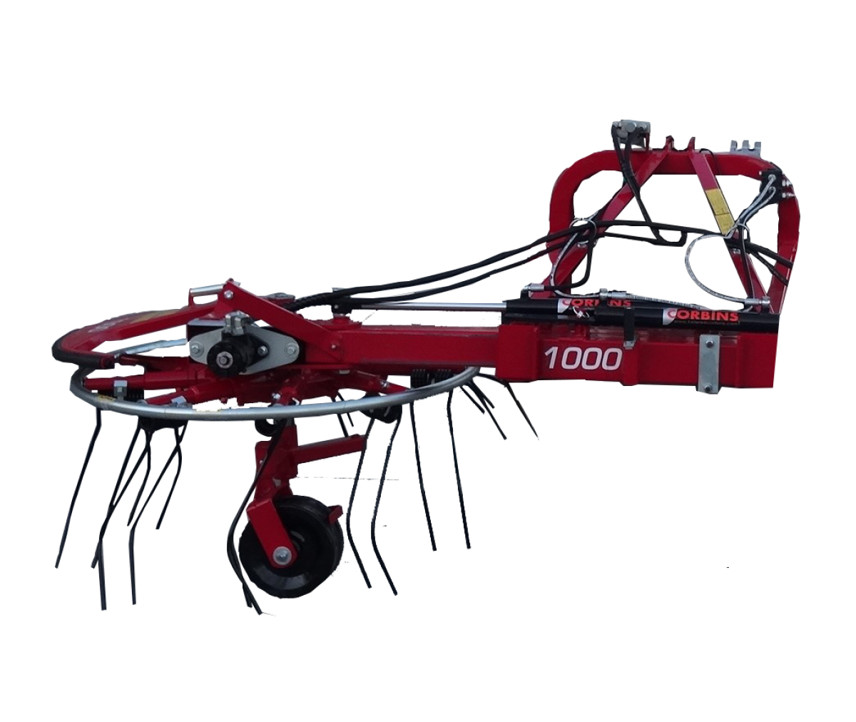 Alineadora de restos de poda para plantaciones de olivos, almendros, frutales, cítricos, etc. Montaje a los tres puntos frontales del tractor (es obligatorio que el tractor disponga de elevador tripuntal frontal). Accionamiento hidráulico, desplazamiento lateral hidráulico, ruedas de control de altura.