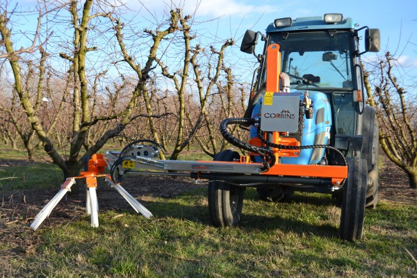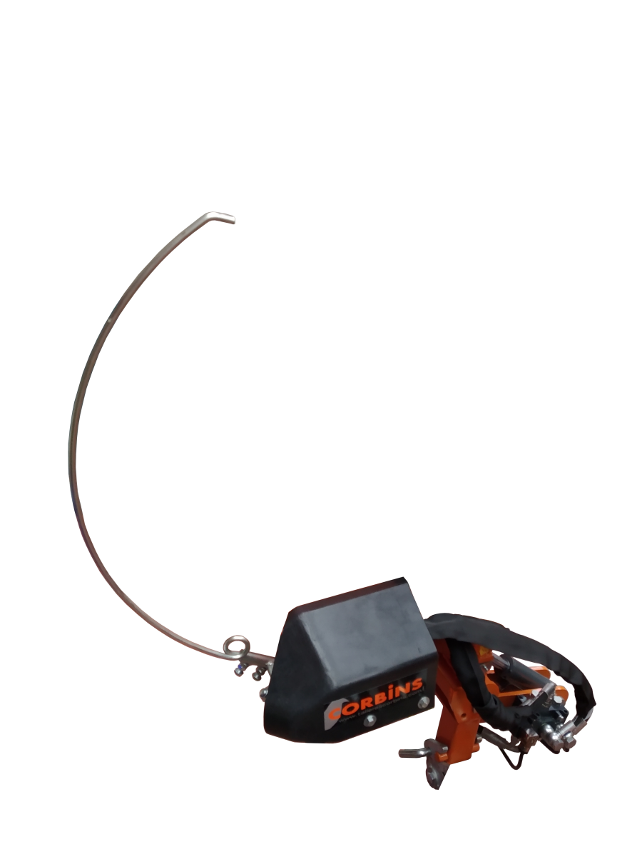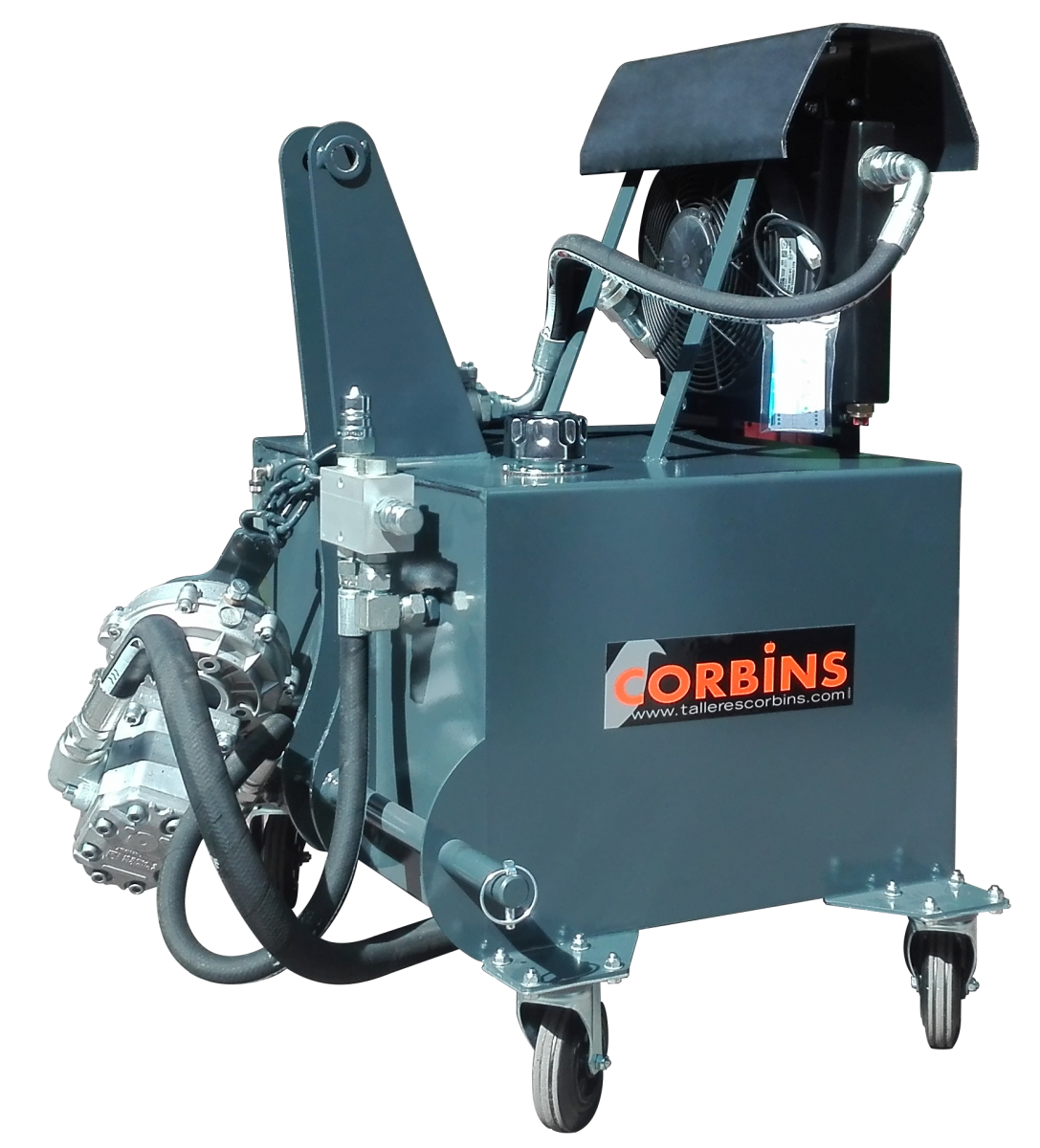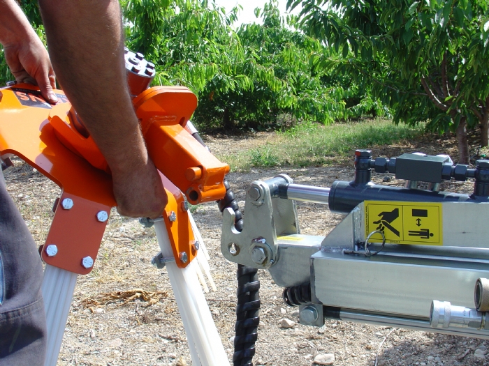 Porta útiles para la parte frontal del tractor, elevación, extensión e inclinación hidráulica, mando eléctrico ERGO 3 funciones + arranque/paro motor. Carro de apoyo con ruedas para enganche/desenganche. Sistema enganche rápido para los cabezales intercambiables.