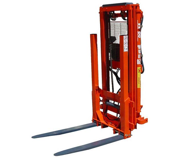Elevador sistema dúplex, pistón central de doble efecto, doble cadena tipo "fleyer", perfiles de elevación en acero en forma de U calidad ST52.3 laminados en caliente, rodamientos de bolas y rodillos sementados con casquillo de nylon, horquillas plegables, movimientos: elevación, inclinación y desplazamiento. De serie con distribuidor manual de 3 palancas.