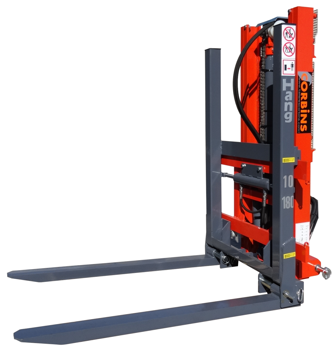 Elevador sistema dúplex, pistón central de doble efecto, cadena tipo "fleyer", perfiles de elevación en acero en forma de U calidad ST52.3 laminados en caliente, rodamientos de bolas en los rodillos del carro, horquillas plegables, movimientos: elevación, inclinación y desplazamiento. De serie con distribuidor manual de 3 palancas.