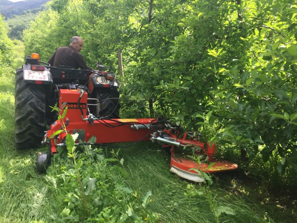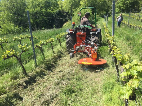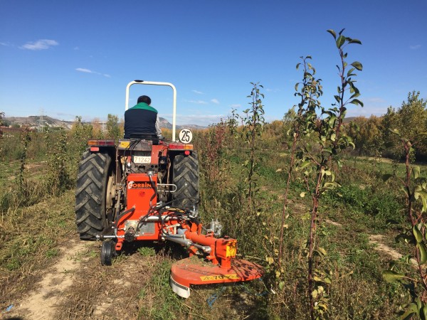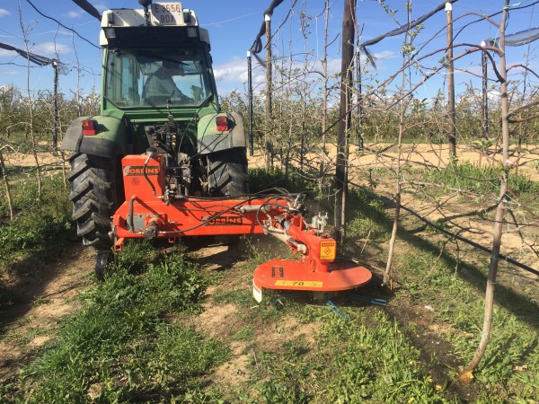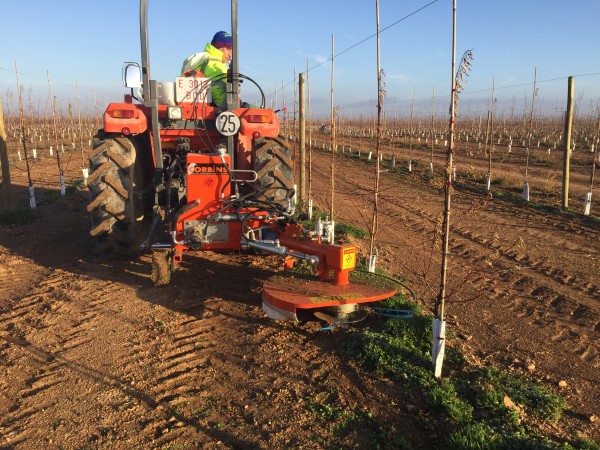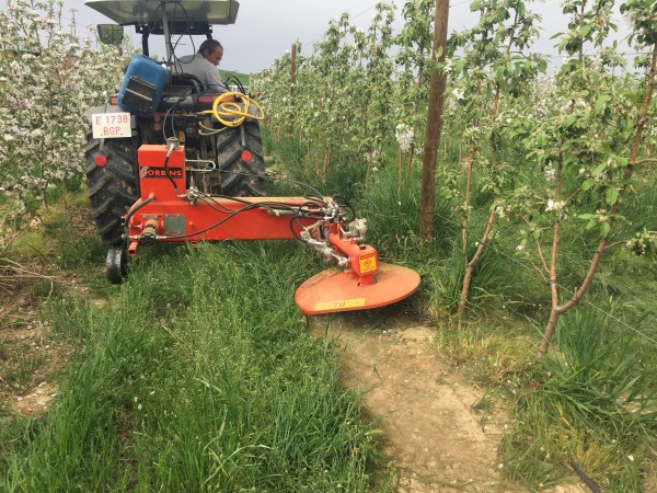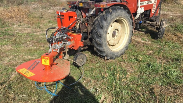 Disco corta hierba interfilas adaptado a los tres puntos del tractor y accionado con la toma de fuerza. Sensor hidráulico intercepas, disco con Ø de corte regulable hasta 90 cm., sistema de corte con hilos de especial aleación y durabilidad. Puede trabajar en zonas de piedra o con tuberias de gotero en el suelo.