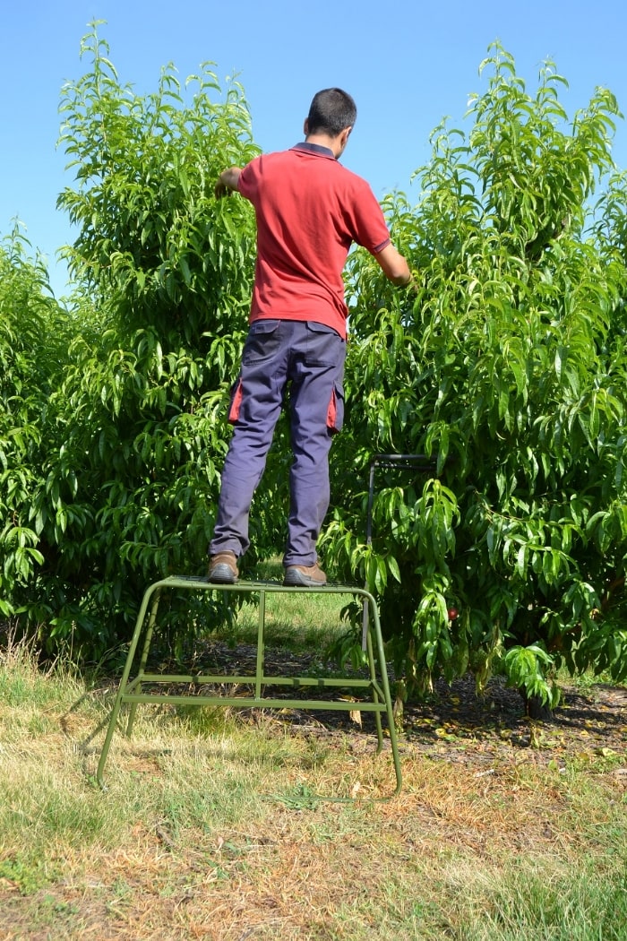 Escaleras para aclareo y cosecha , fácilmente transportables apilables una encima de otra ocupando el mínimo espacio. Doble peldaño para mayor comodidad y Seguridad del operario.