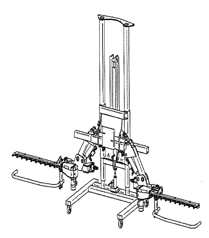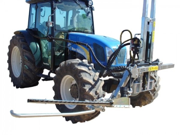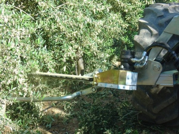 Recortadora CASTOR para bajos de olivos y frutales. Regulación de la altura de trabajo hidráulica, regulación de la inclinación hidráulica y regulación de la anchura de trabajo manual (opcional hidráulica). Mando electro hidráulico incluido de serie.