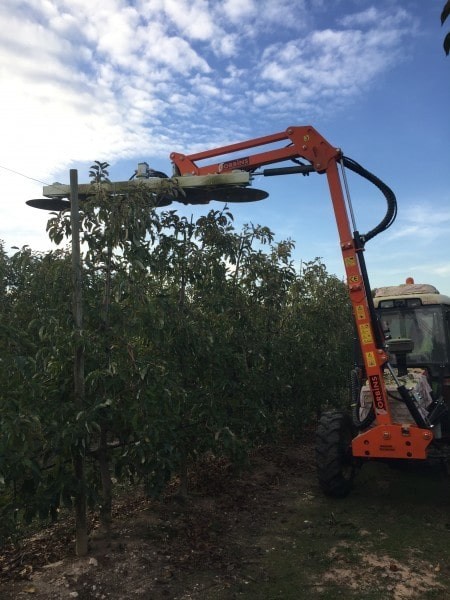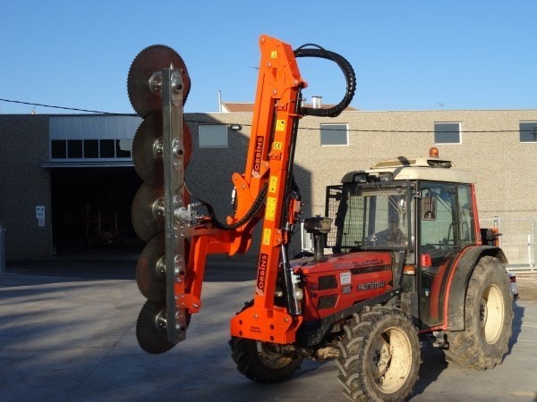Prepodadora frontal para poda en seco y en verde. Máquina con cuatro funciones hidráulicas, permitiendo una adaptación óptima a cualquier condición de trabajo. Sistema de elevación con paralelogramo, asegurando siempre la misma inclinación del corte independientemente de la altura de trabajo. Mandos electro-hidráulicos y central hidráulica incorporada con refrigerador de aceite.
